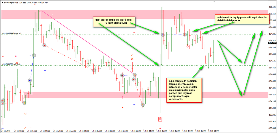 La tarde sin duda estuvo animada, viendo la marcha que llevaban el EUR/USD y el USD/JPY entré largo pensando que era el camino más fácil para el precio...después de ir a favor casi 30 pips cerré en even la primera operación. Hice un segundo largo y pudiendo cerrar en even no lo hice y el caso es que lo estuve sopesando un momento. Tengo que pensar por qué cometi este error.