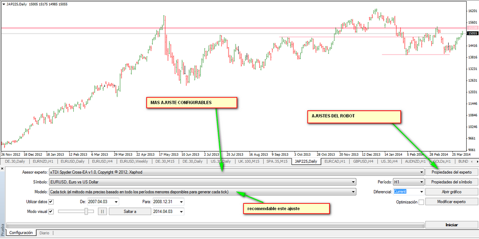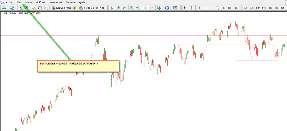 Buenas ALson, Suponiendo que has descargado el EA y el Indicador en sus respectivas carpetas. Los pasos a seguir serían 1 Cierras la plataforma y la vuelves a abrir 2 En el menú elige VER-PRUEBA DE ESTRATEGIA 3 haces los ajustes que necesites en la prueba de estrategia 4 en el gráfico que se te abre puedes arrastras el indicador desde el desplegable de indicadores por si quieres ver como trabaja saludos