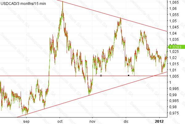 Les dejo un grafiquillo de Usd/Cad, aún no, pero en poco tiempo se pondrá interesante para venderse, si no me equivoco. Y quizá coincida con algún suelo del eur/usd, que está bajando demasiado a mi gusto. Abrazos