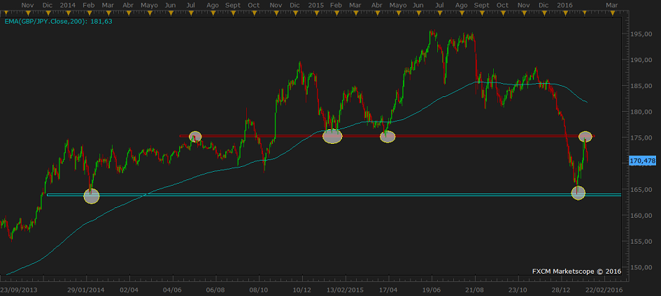 Re: USDJPYTe pongo un grafico del GPBJPY diario, para que veas mi forma de pensar (que tampoco es mia), el precio ha sido rechazado en 175,00 zonal y creo que buscara volver a los 165.00 zonales, ya se que en medio hay algún soporte, pero los veo secundarios y no me gusta llenar el grafico de líneas, prefiero solo tener en cuenta las importantes, en base al grafico diario seria buscar entradas en corto, ya sabemos que mañana puede hacer todo lo contrario pero mi razonamiento no es malo.