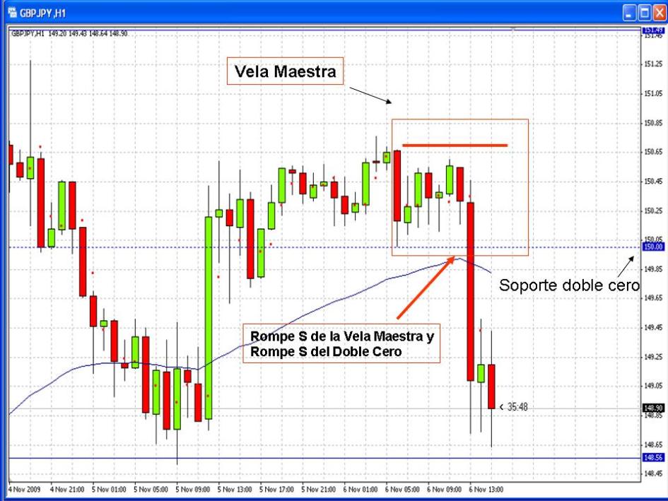 Lo que observe es que en pares de mucha volatilidad como el GBPJPY la ruptura significa entre el 80 y 100 % del tamaño de la vela maestra.