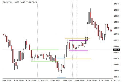 Ademas, esta estrategia de NickB recomienda el trading en el GBP/JPY en H4, que como todos sabemos es el par mas volatil y a menos que se tenga buena experiencia haciendo trading, no es recomendable operar este par en cuenta real y ademas, es necesario tomar en cuenta que en H4 hay bastante variacion en la formacion de velas dependiendo del broker. Hace unas horas entre al chat de forex4noobs.com, donde se supone que entran algunos de los seguidores de NIckB... me sorprendio no encontrar a nadie que use esta estrategia tal como lo menciona el manual. Saludos