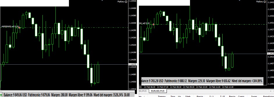 feb 13,todo sigue casi igual, tenemos unas nuevas operaciones que nos dejan en -100, en este momento los dos brokers empataron equidad, jejeje.