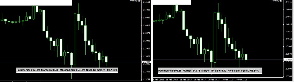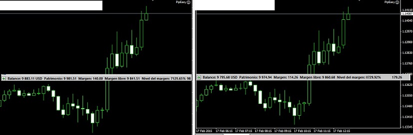 Feb 17, la situación esta así, tengo 3 soldaditos en cada bróker luchando. el bróker F , sobrepaso al bróker M, por unos pocos pips , pero eso vale. por ahora todo esta muy bien, los dos están casi en los 10.000 usd.