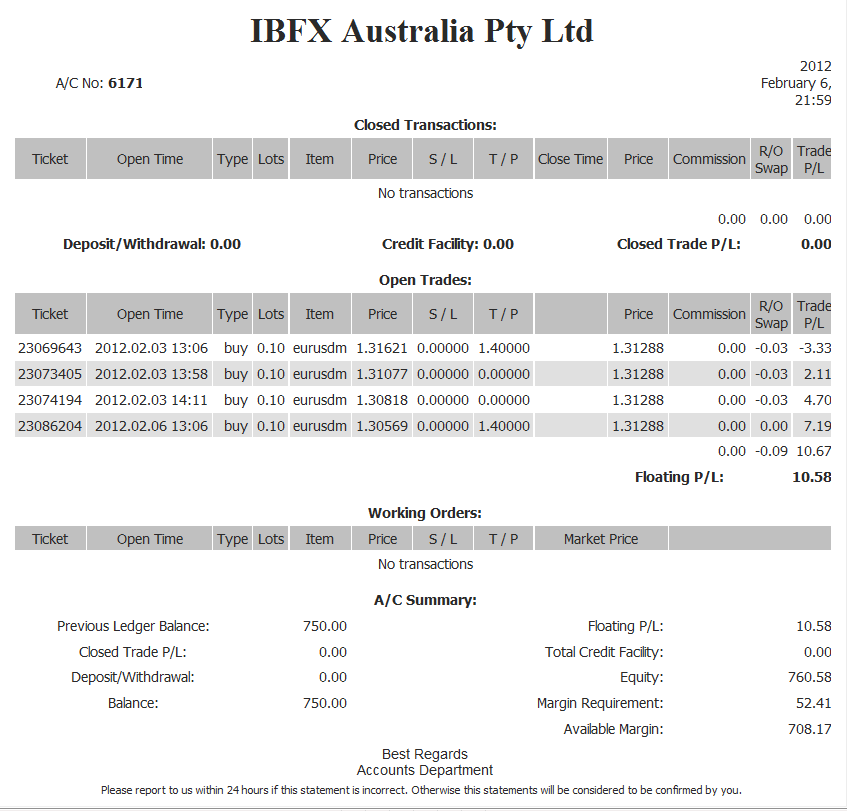Re: Vivir del Forex- EXPERIMENTO.la imagen anterior corresponde a febrero 6, para el dia de hoy la situacion es la siguiente, hemos recogido algunos pip, tengo 11 operaciones de compra abiertas, el balance esta en 800 usd, lo cual me da un 7%, ahora si el precio cae como cayo el viernes, me baja el patrimonio considerablemente,