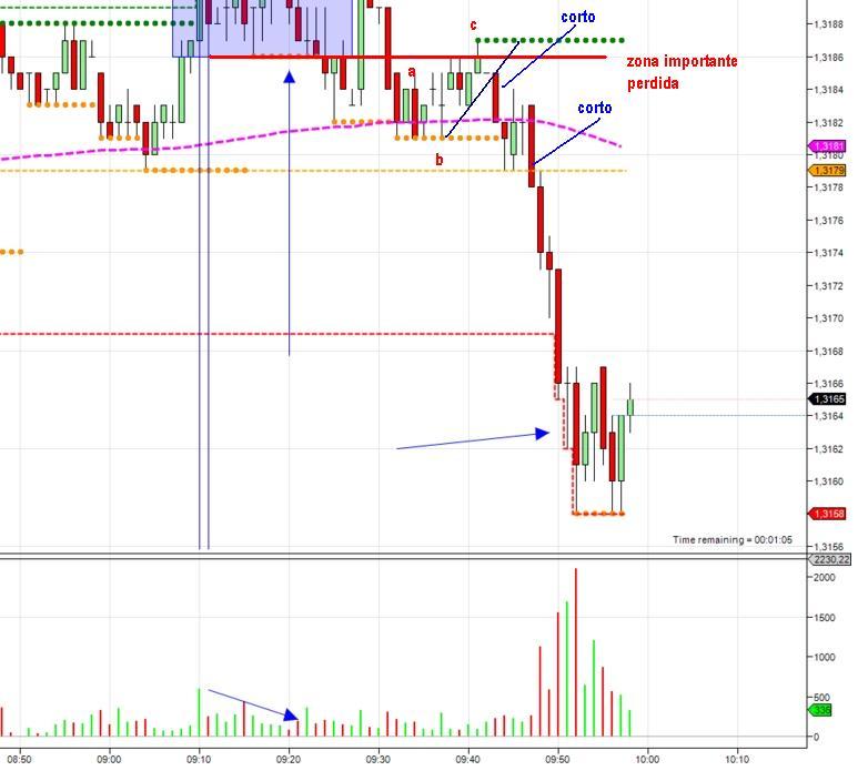 He utilizado tu gráfico para explicar un poco dónde hubiese entrado yo. - Marcada en rojo la zona a tener en cuenta. -Rompe la zona en un impulso. -Yo esperaría el retroceso de ese impulso. Lo hace en abc, viendo como en el retroceso el volumen disminuye. -Entrada al corte de la directriz de la onda c, en en b horizontal. En cualquier caso personalmente nunca utilizo TF de 1min, genera mucho ruido. "El conocimiento sólo se posee si se comparte"