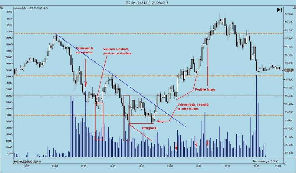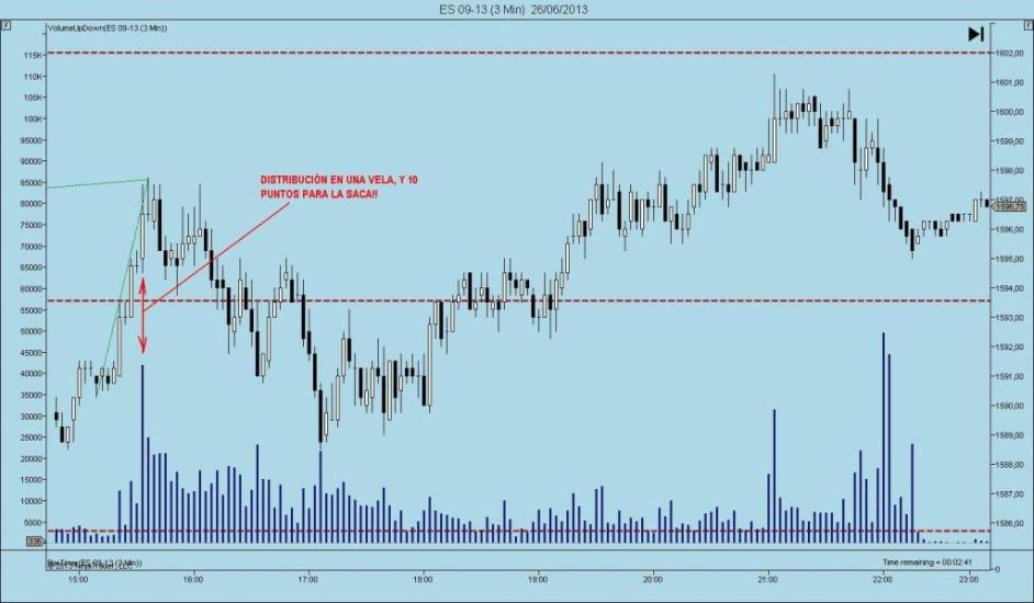 Llevamos unos días de claras tendencias en el mini sp. Pero qué difícil nos lo ponen. He elegido la sesión del pasado lunes, porque se ve claramente como acumulan para subir el precio a los orígenes del movimiento bajista.