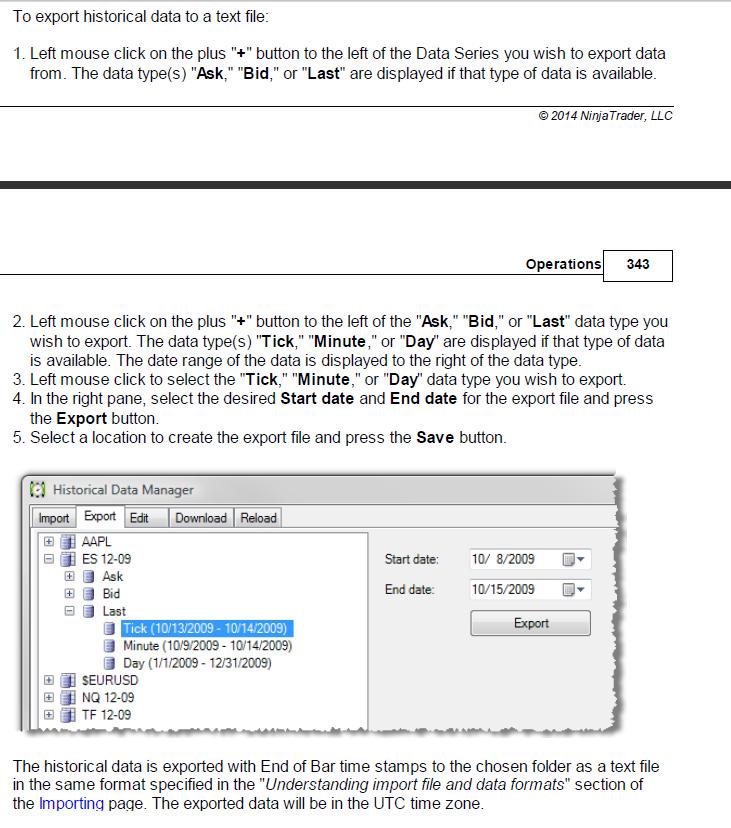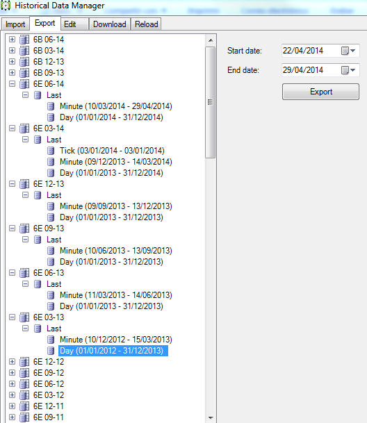 sinceramente yo estas cosas del Ninja no las manejo nunca, así que mucha idea no tengo. Te cuento. Como ves en la imagen, no me deja exportar un periodo completo, sino que como los contratos de futuros van venciendo, el lo almacena por cada periodo de vencimiento. Luego al desplegar last, solo se ve días y minutos. No me digas en cuántos minutos lo exporta. Yo te he exportado en Day, desde el 2011 hasta ahora, vencimiento por vencimiento. No se si te valdrá. Dime si te vale, y si eso exporto también los minutos. Pero antes de saberlo es tontería perder el tiempo. SAlu2 "El conocimiento sólo se posee si se comparte"