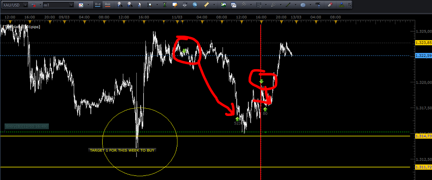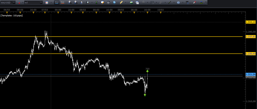 Re: XAUUSDHoy Viernes 9 Marzo. Con los 40 pips del otro día + estos 70 de hoy, breakeven semanal.